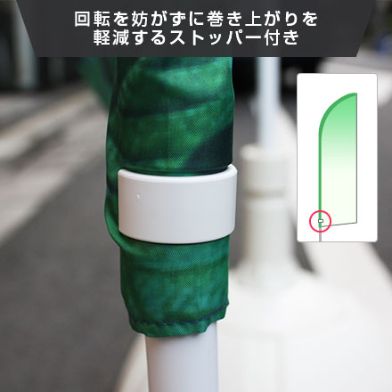 スウィングバナー独特の華麗な形状を固定していただくために、パイプを通せる棒袋を縫製しております。 -